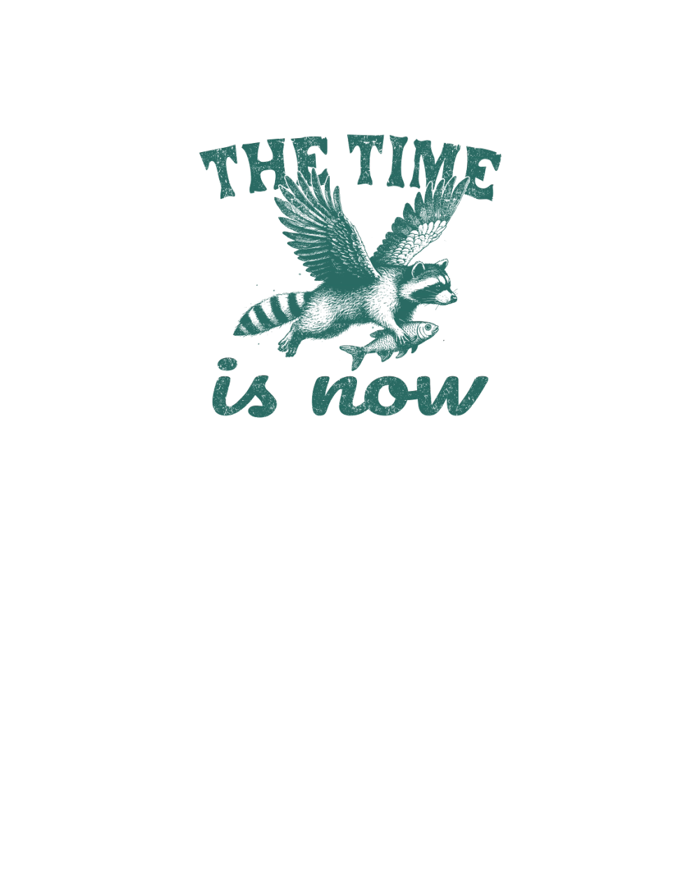 Now Is The Time Raccoon Flying L Green