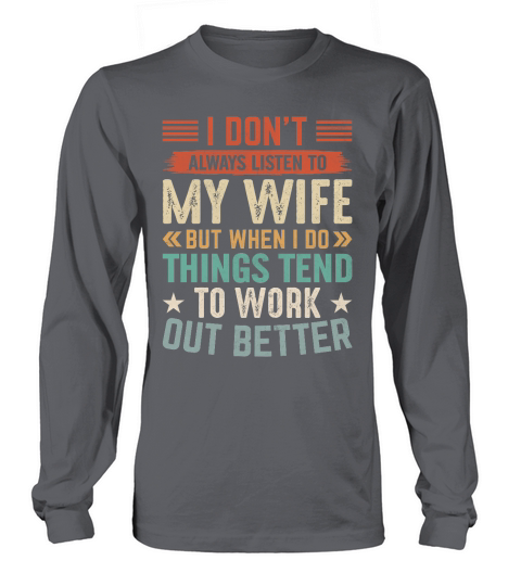 Shop I Don’t Always Listen to My Wife but When I Do things tend to work out better Long sleeved Unisex custom made just for you. Available on many styles, sizes, and colors.