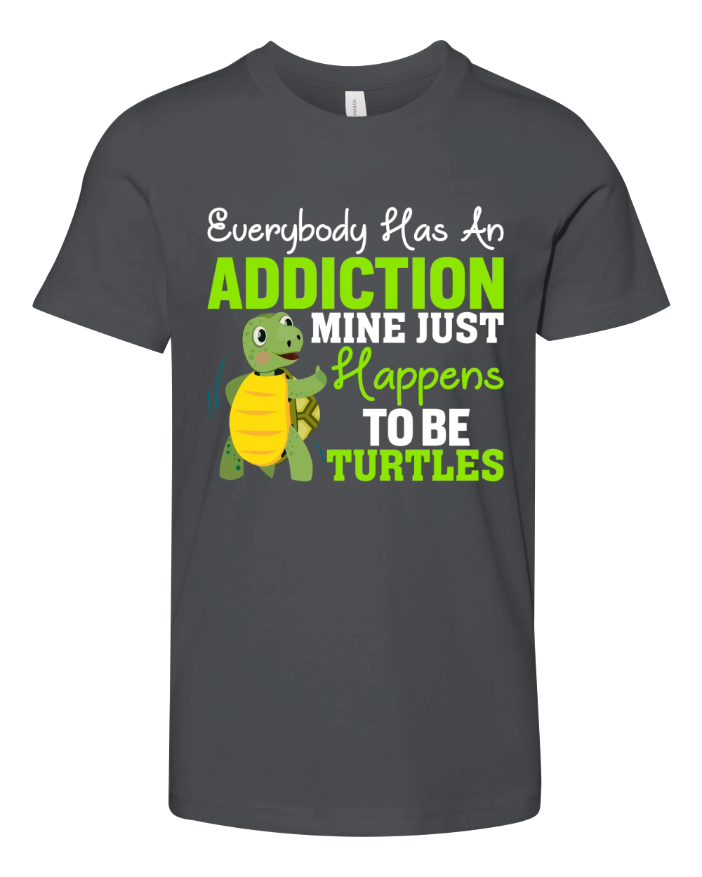 Shop Everybody has an addiction mine just happens to br turtles Youth Unisex Jersey Tee custom made just for you. Available on many styles, sizes, and colors.