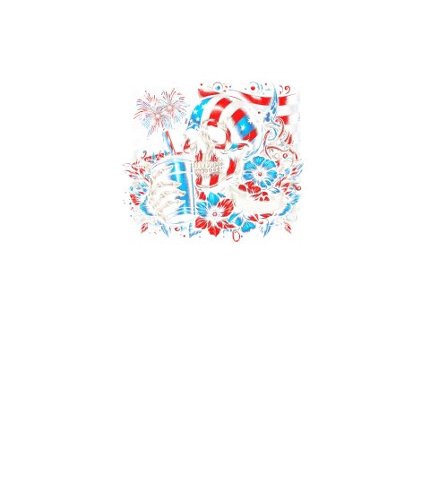 Patriotic Skull with Flag and Flowers