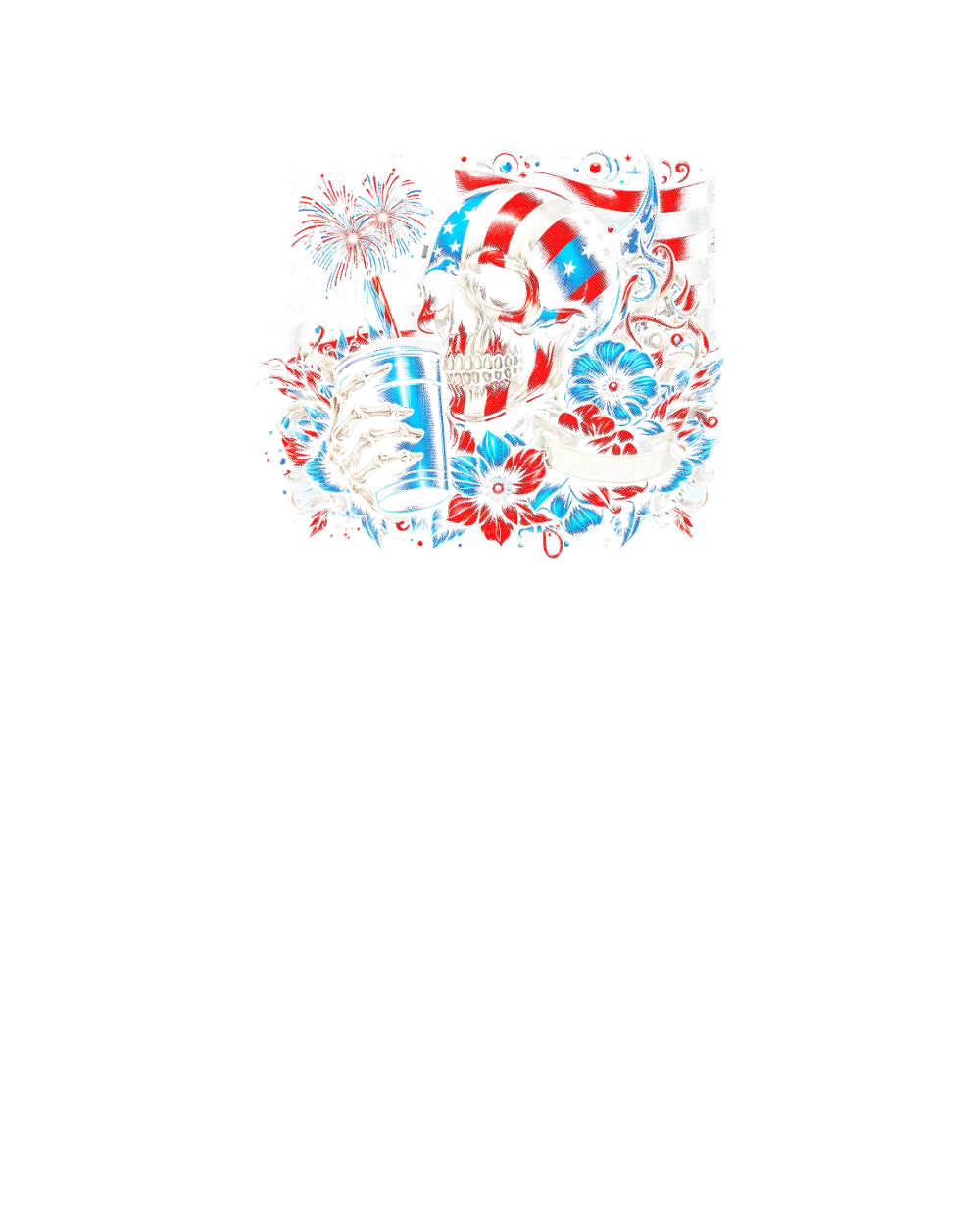 Patriotic Skull with Flag and Flowers