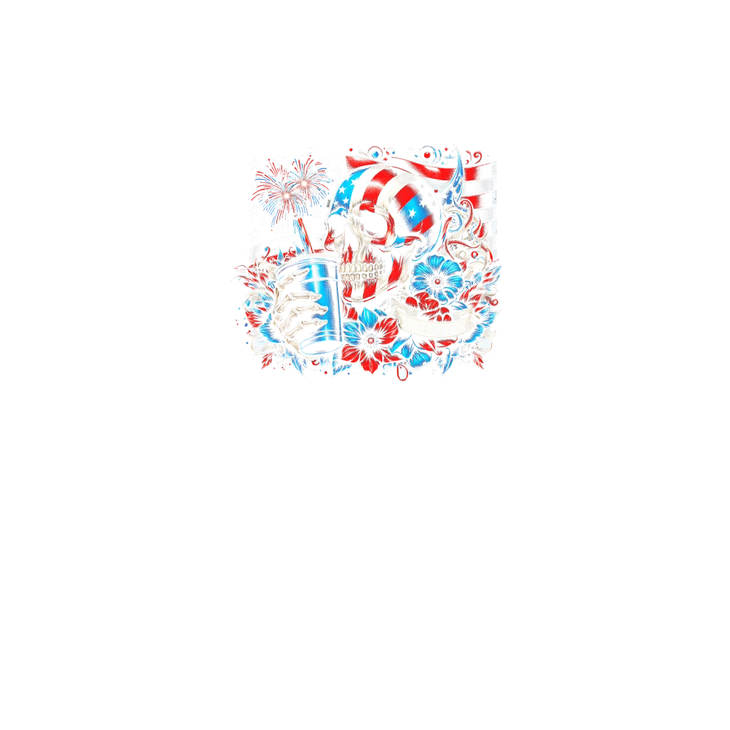 Patriotic Skull with Flag and Flowers