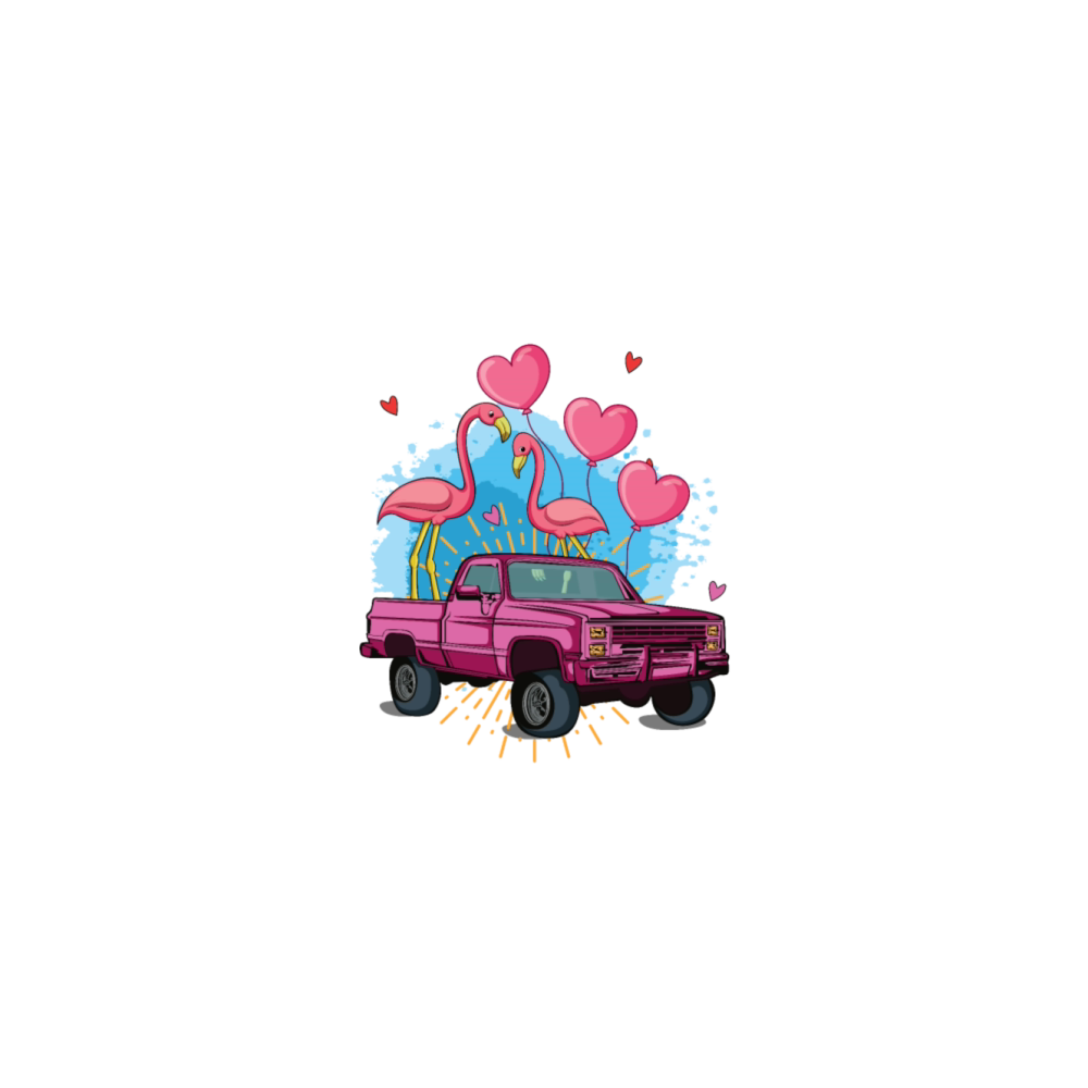 Pink Kawaii Truck Flamingo Hearts Valentines Day