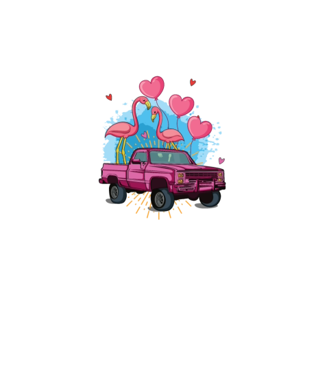 Pink Kawaii Truck Flamingo Hearts Valentines Day