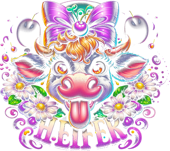 Playful Heifer Cow with Purple Bow