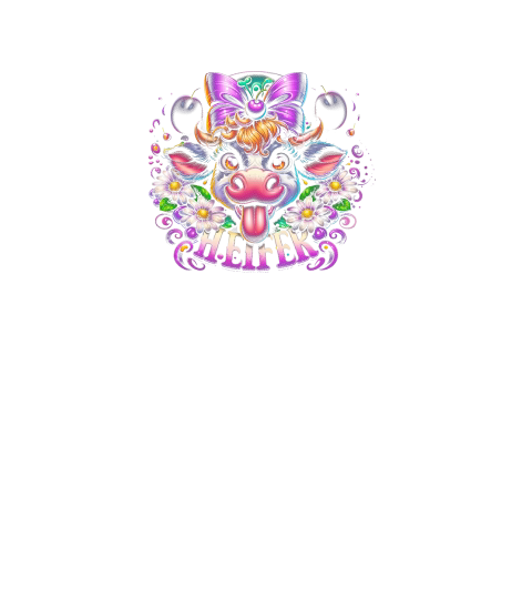 Playful Heifer Cow with Purple Bow