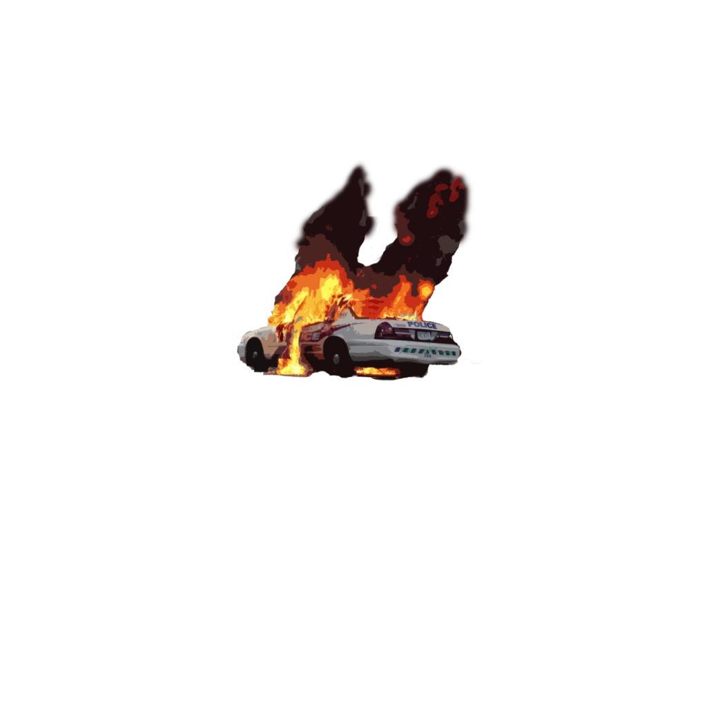police car on fire
