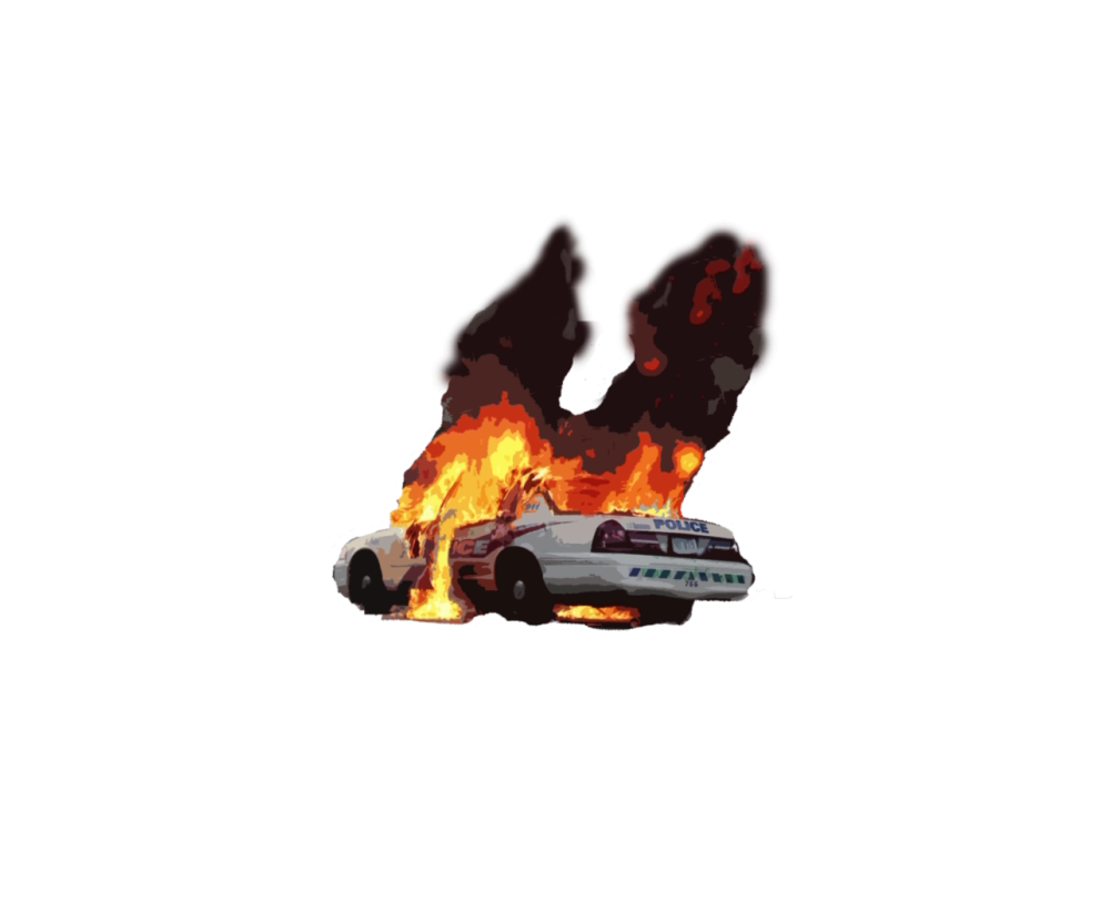 police car on fire