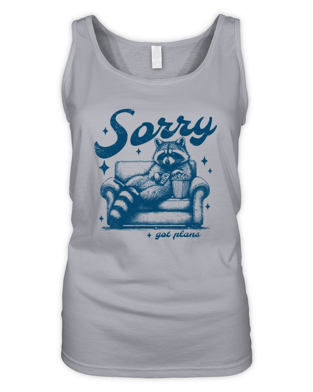 Shop Sorry Got Plans Raccoon Sofa Popcorn D Blue GR Organic Women's Tank Top custom made just for you. Available on many styles, sizes, and colors.