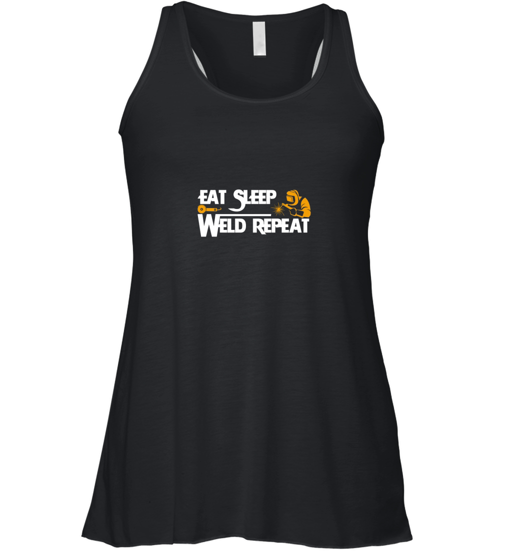 Shop Eat Sleep Weld Repeat Funny Women's Flowy Tank Top custom made just for you. Available on many styles, sizes, and colors.
