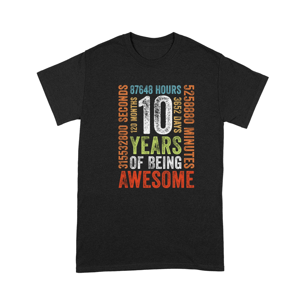 Shop 10 Years Old 10th Birthday Gift Vintage Retro 120 Months Premium T-shirt custom made just for you. Available on many styles, sizes, and colors.