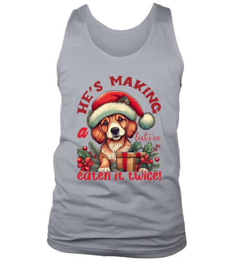 Shop Hes making a list, ive eten it twice! Dog Tank Top Unisex custom made just for you. Available on many styles, sizes, and colors.