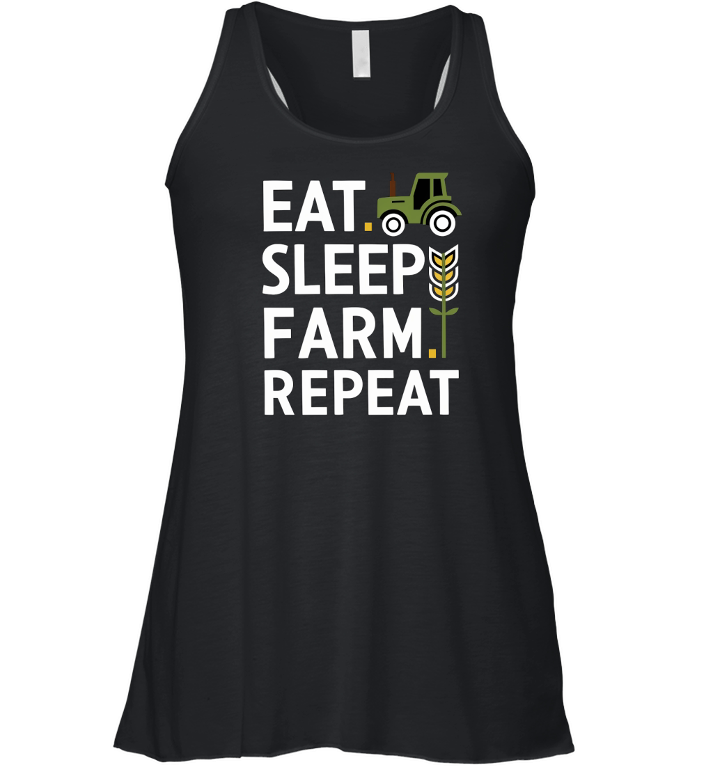 Shop Eat Sleep Farm Repeat t Women's Flowy Tank Top custom made just for you. Available on many styles, sizes, and colors.