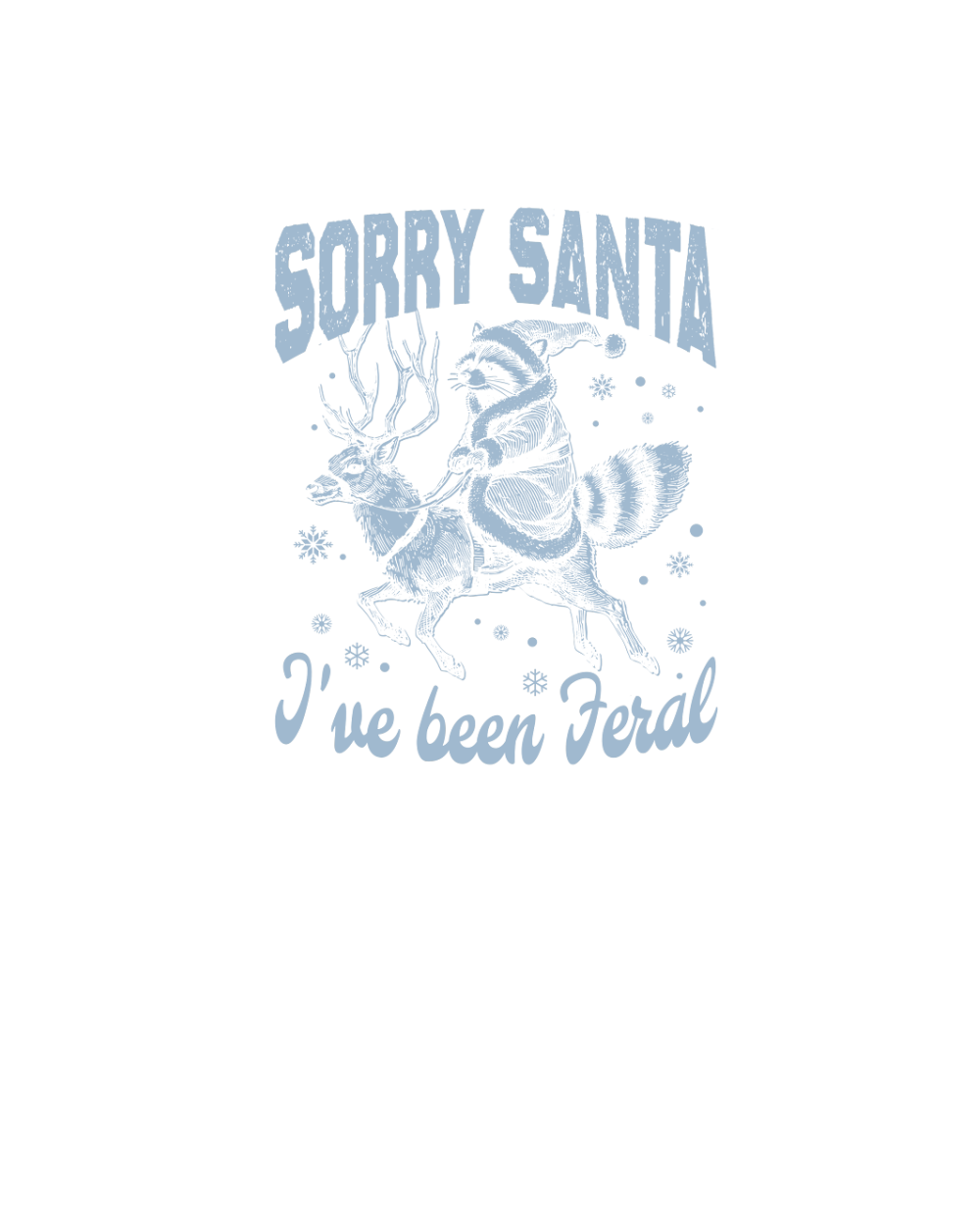 Raccoon Santa Riding Reindeer D Grey