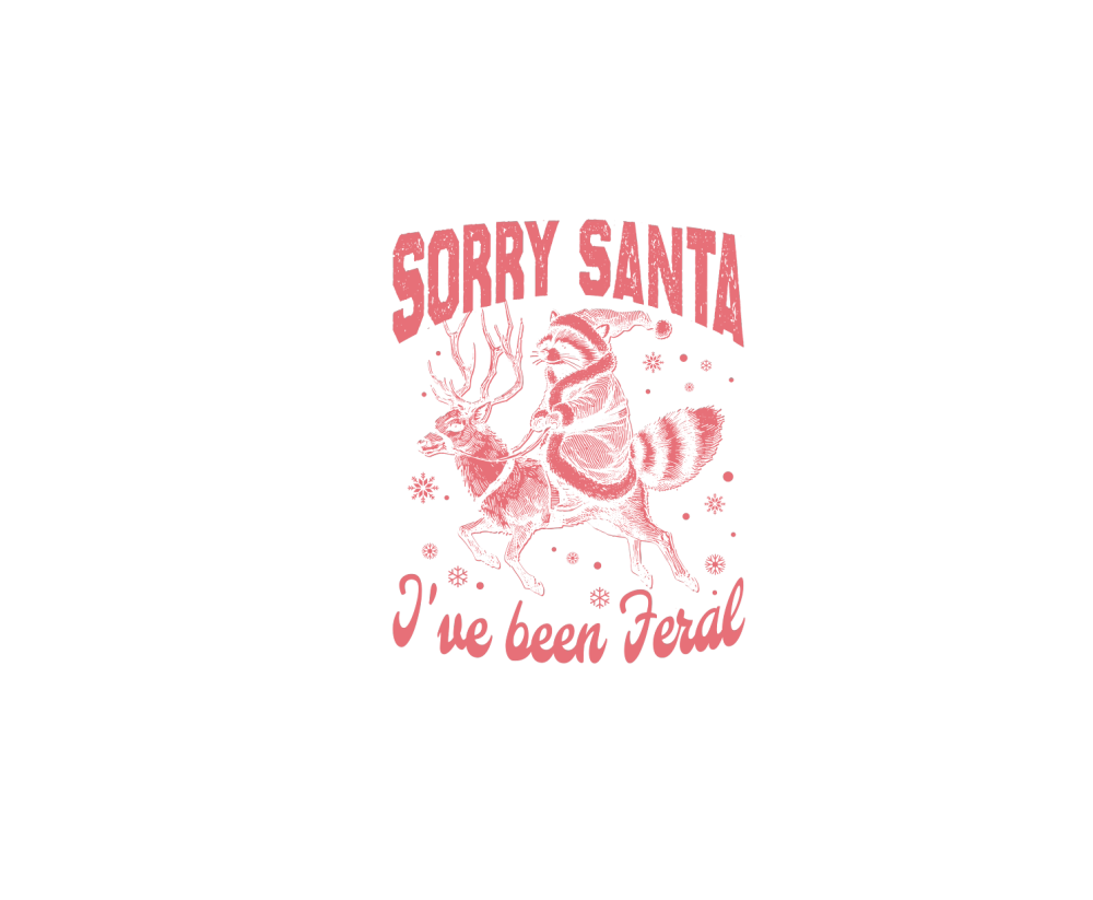 Raccoon Santa Riding Reindeer D Red