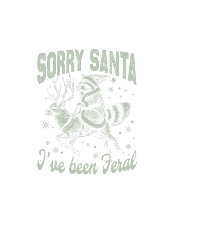 Raccoon Santa Riding Reindeer D Reetro Green