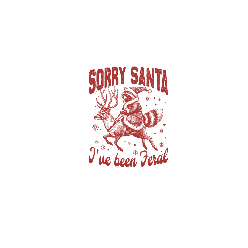 Raccoon Santa Riding Reindeer L Red
