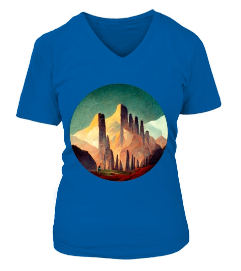 Shop Retro Vintage Mountain V-neck T-Shirt Woman custom made just for you. Available on many styles, sizes, and colors.