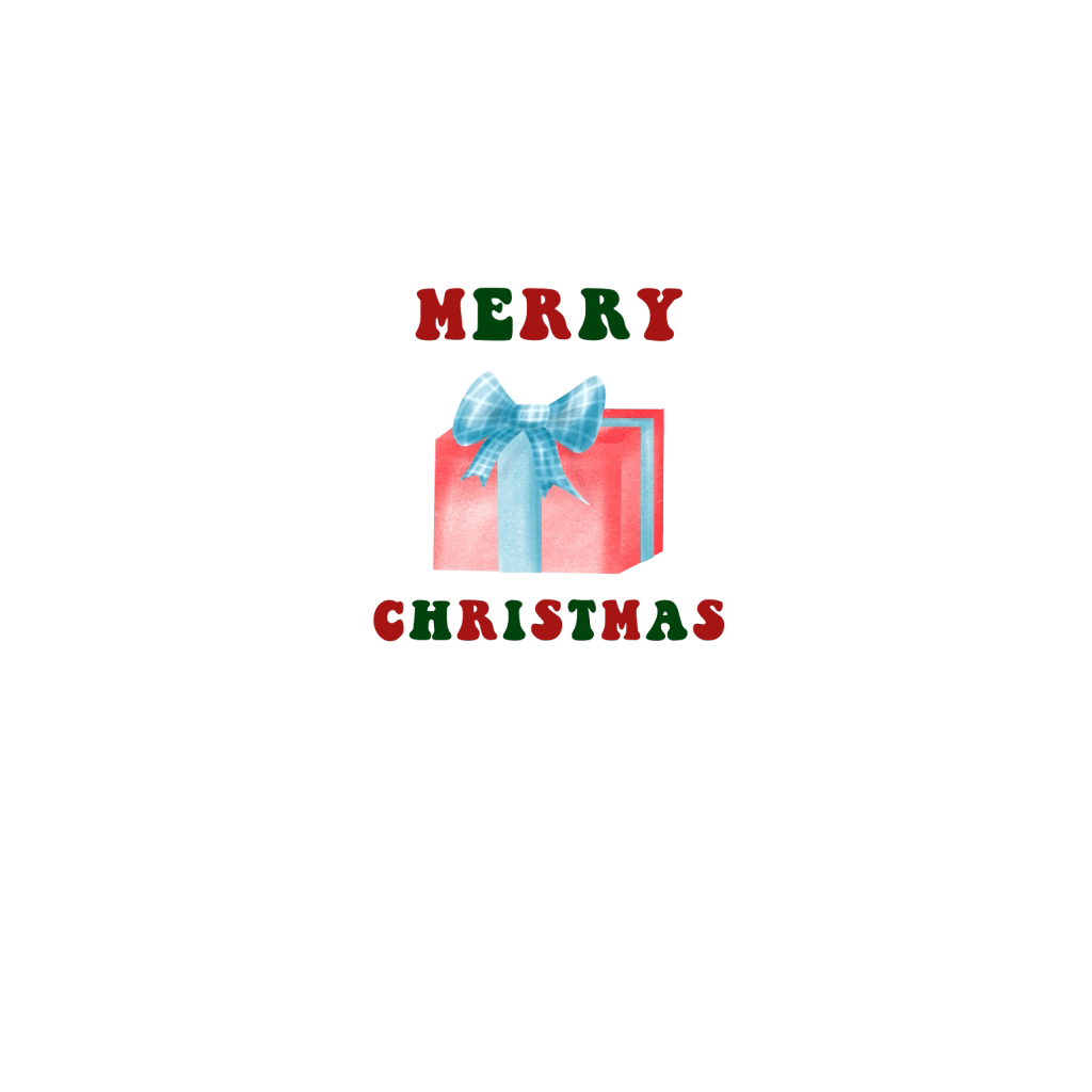 Red gift box with blue ribbon and bow Merry Christmas 3