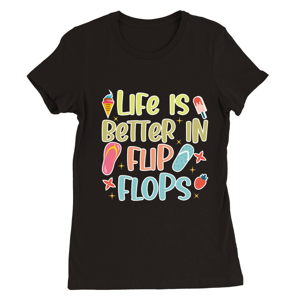 Shop life is better in flip flops Premium Womens Crewneck T-shirt custom made just for you. Available on many styles, sizes, and colors.