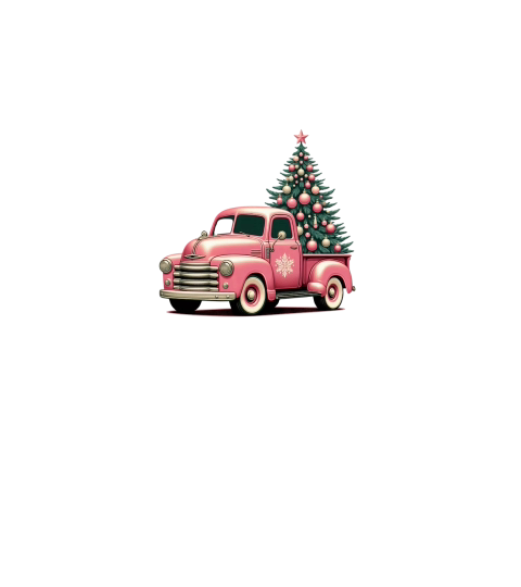 Retro Pink Christmas Truck with Tree Clipart (1)