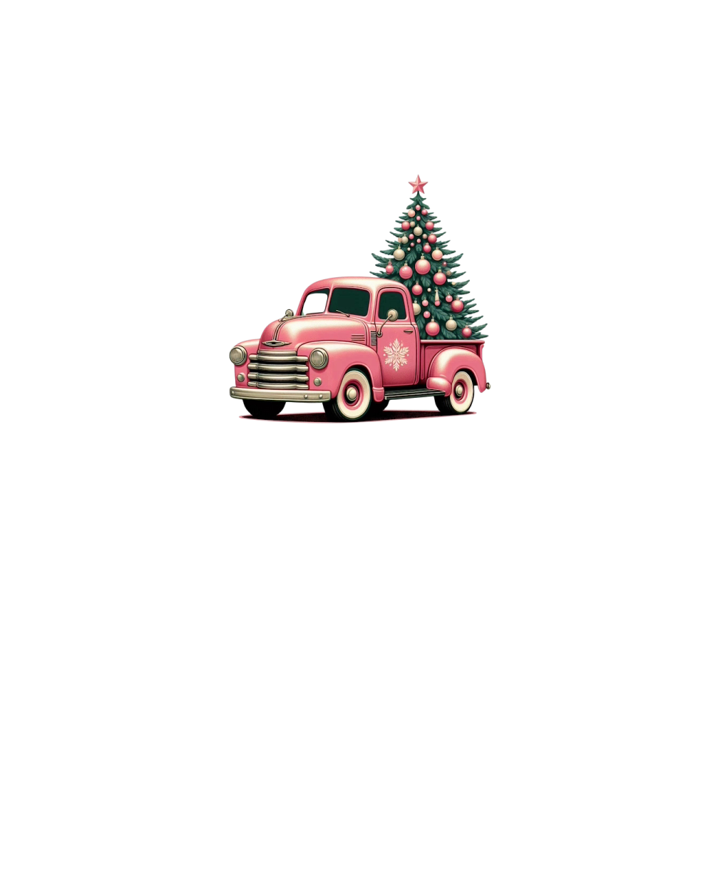 Retro Pink Christmas Truck with Tree Clipart (1)