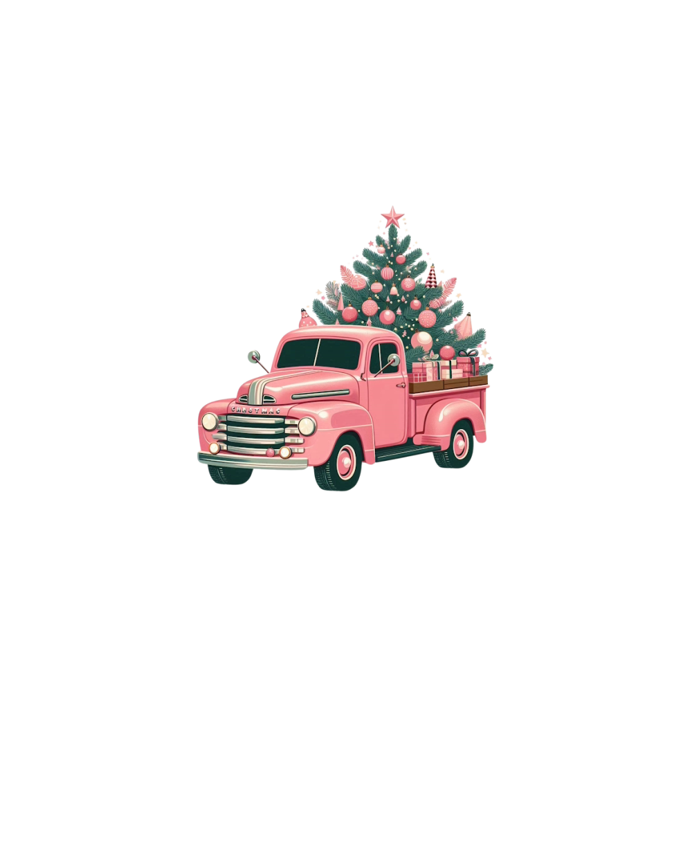Retro Pink Christmas Truck with Tree Clipart (2)
