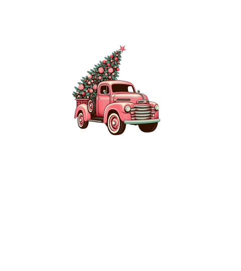 Retro Pink Christmas Truck with Tree Clipart (3)