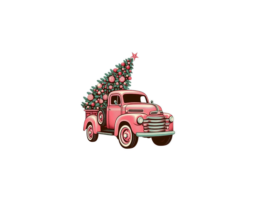 Retro Pink Christmas Truck with Tree Clipart (3)