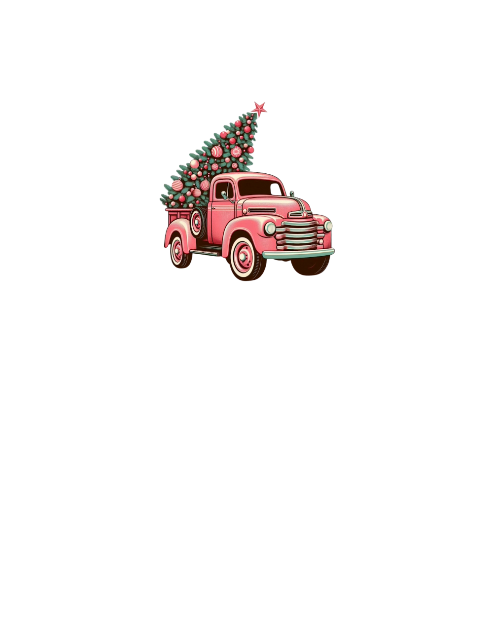 Retro Pink Christmas Truck with Tree Clipart (3)