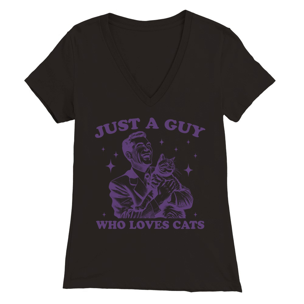 Shop Just A Guy Who Loves Cats L Violet Premium Womens V-Neck T-shirt custom made just for you. Available on many styles, sizes, and colors.