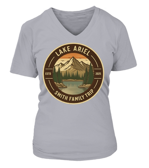 Shop Lake Ariel Smith Family Trip 2025 V-neck T-Shirt Woman custom made just for you. Available on many styles, sizes, and colors.