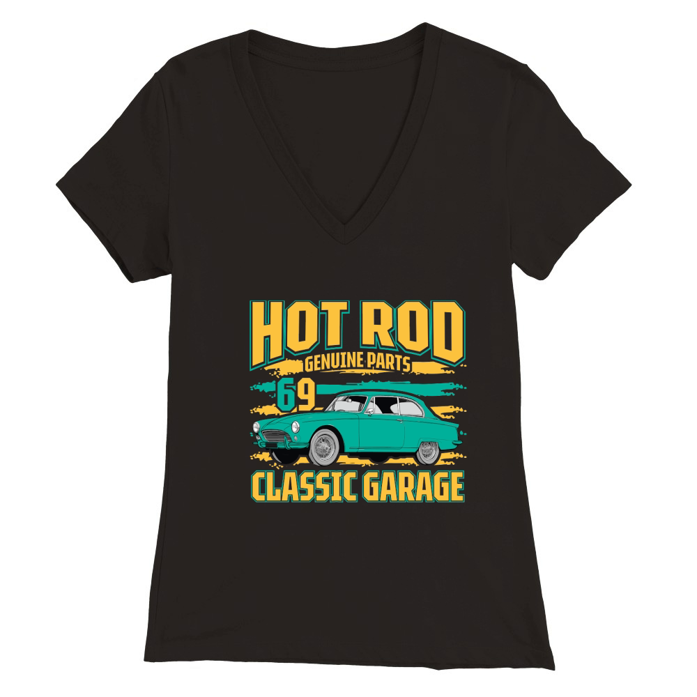 Shop Hot Rod Genuine Parts 69 classic garage Vintage Car Premium Womens V-Neck T-shirt custom made just for you. Available on many styles, sizes, and colors.
