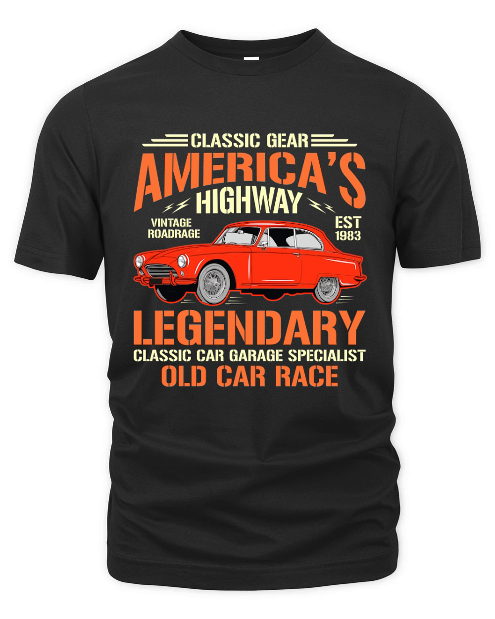 Shop Classic Gear Americas Highway legendary classic car garage specialist old car race Organic Unisex T-shirt custom made just for you. Available on many styles, sizes, and colors.