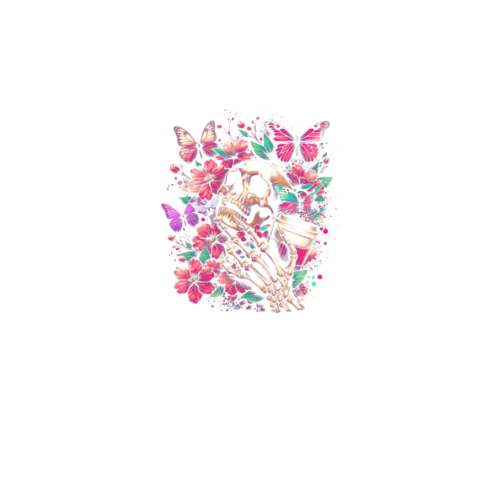 Skull Butterfly and Flowers
