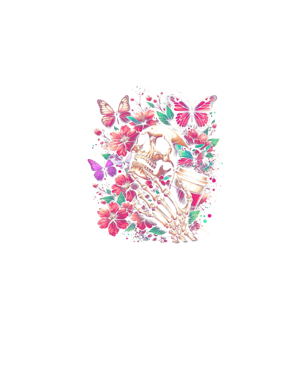 Skull Butterfly and Flowers