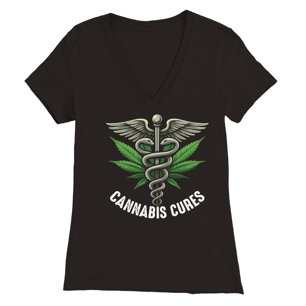 Shop CANNABIS CURES 1 Premium Womens V-Neck T-shirt custom made just for you. Available on many styles, sizes, and colors.
