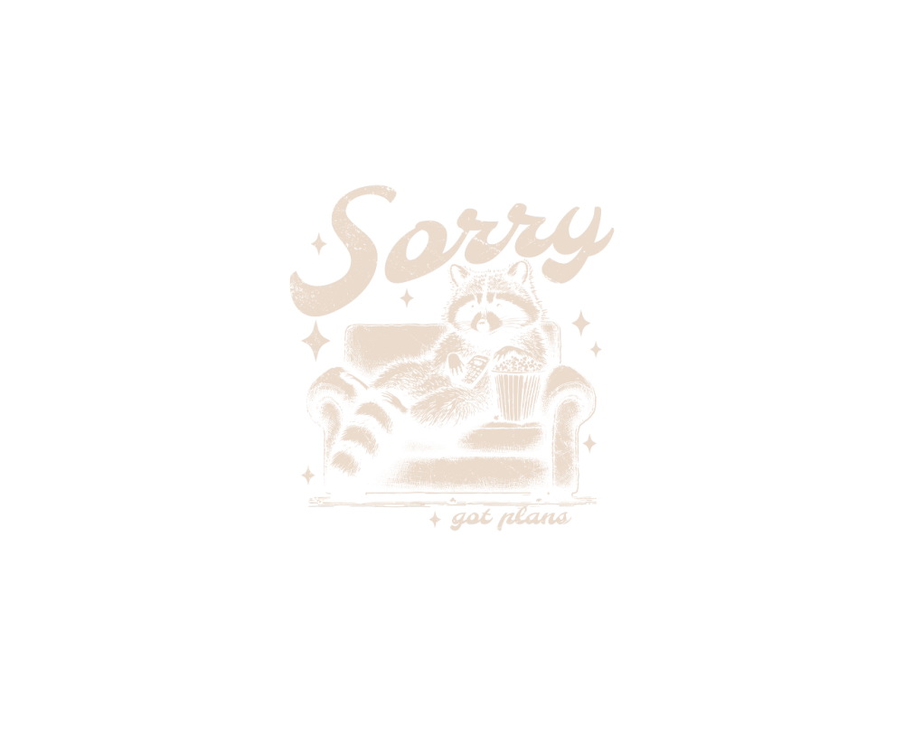 Sorry Got Plans Raccoon Sofa Popcorn D Retro White GR