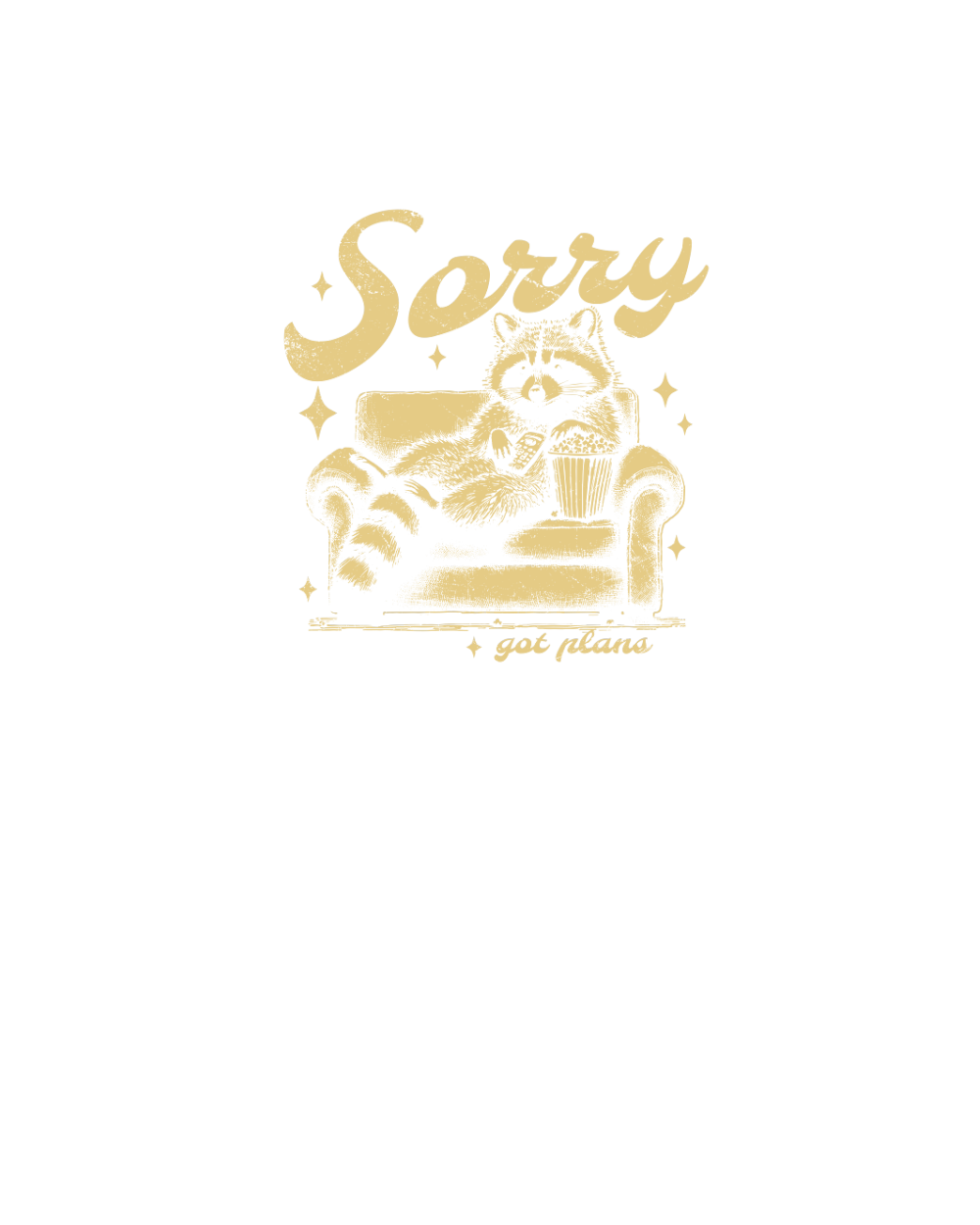 Shop Sorry Got Plans Raccoon Sofa Popcorn D Retro Yellow GR Organic Unisex T-shirt custom made just for you. Available on many styles, sizes, and colors.