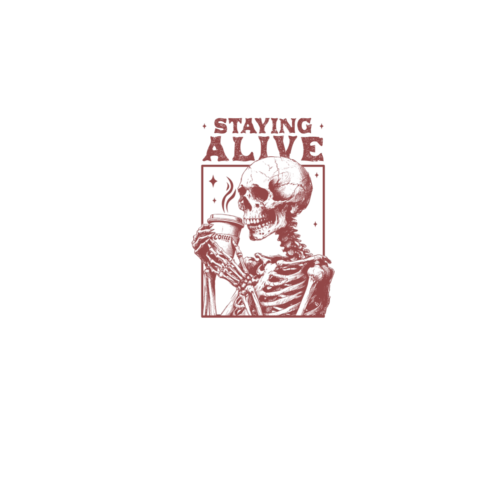 Staying Alive Skeleton Coffee L D Red