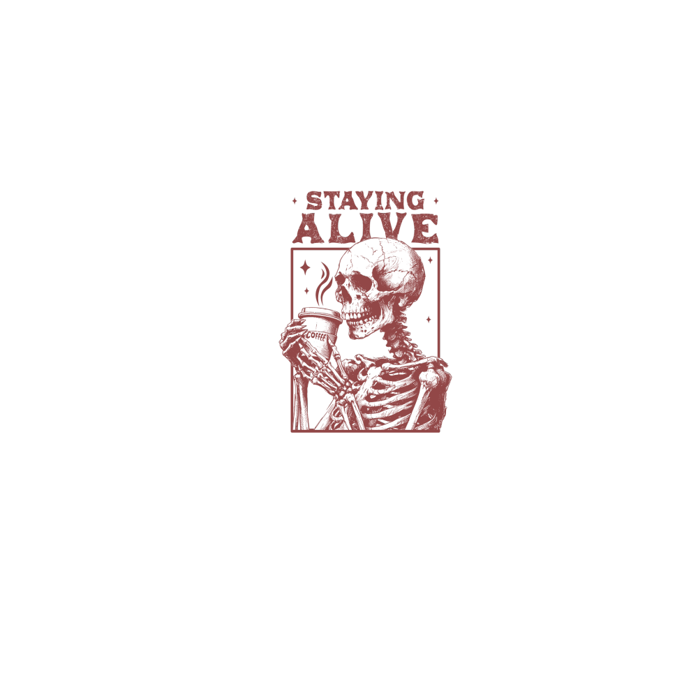 Staying Alive Skeleton Coffee L D Red