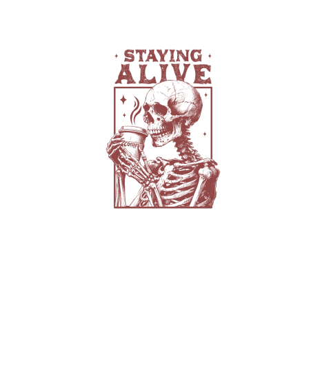 Staying Alive Skeleton Coffee L D Red