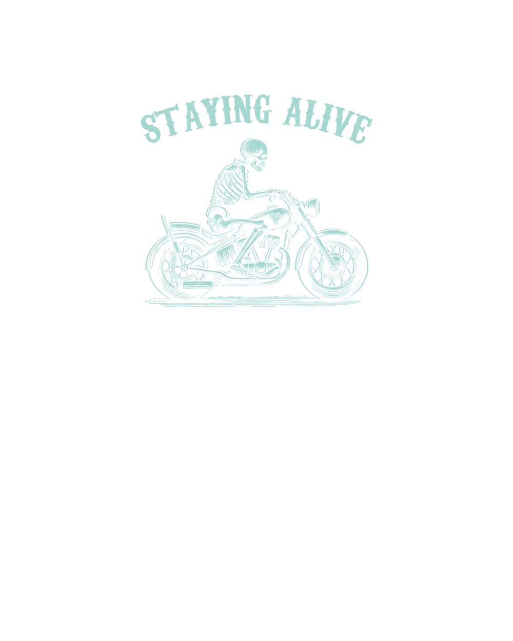 Staying Alive Skeleton riding Motorcycle D Green