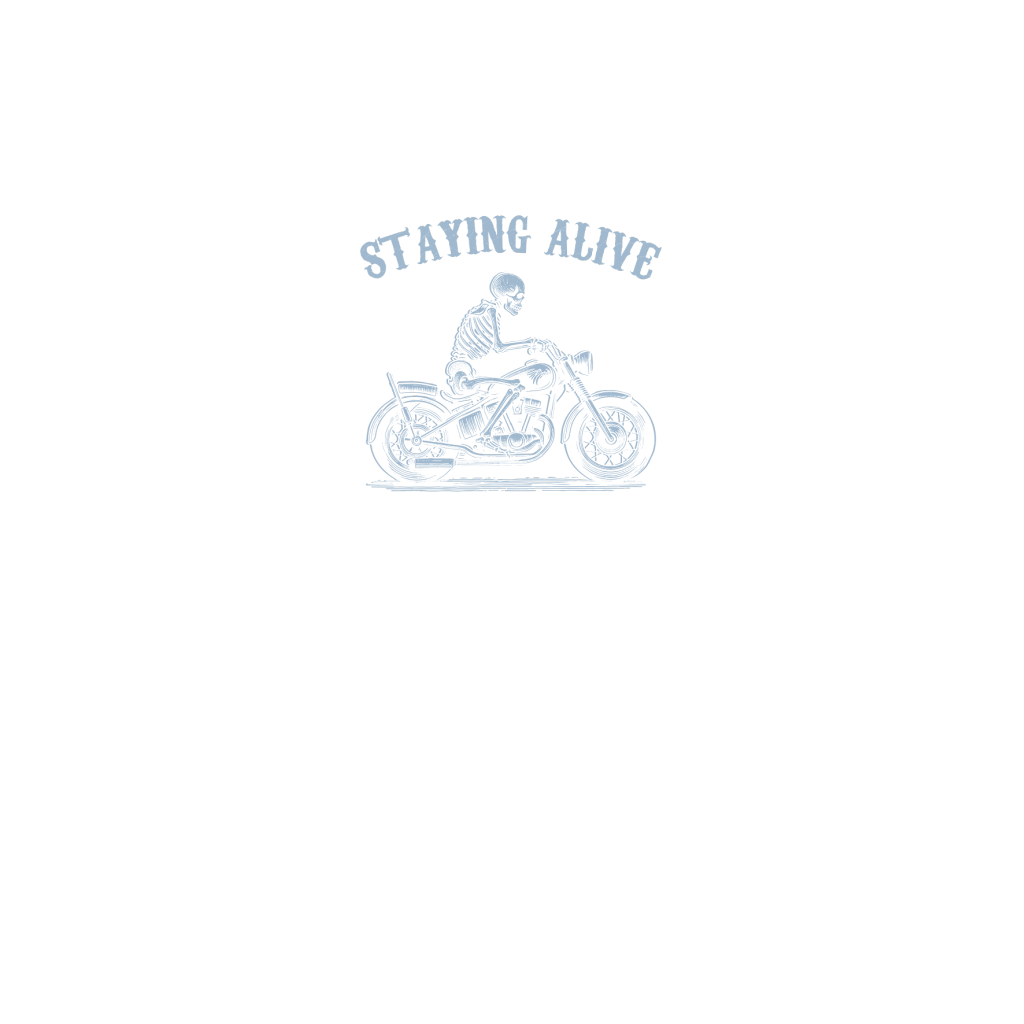 Staying Alive Skeleton riding Motorcycle D Grey
