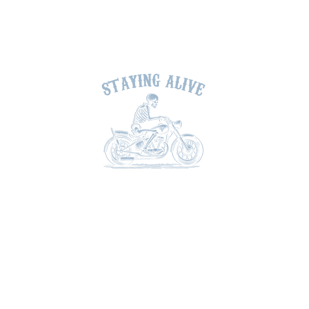 Staying Alive Skeleton riding Motorcycle D Grey