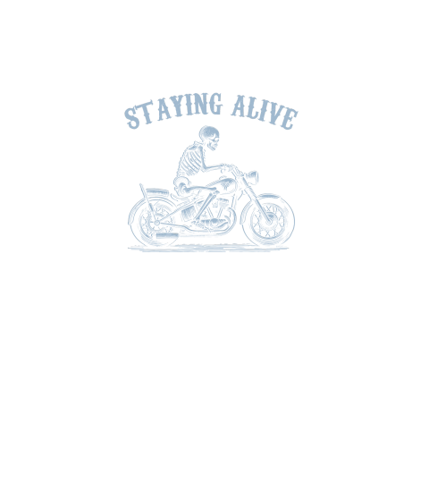 Staying Alive Skeleton riding Motorcycle D Grey