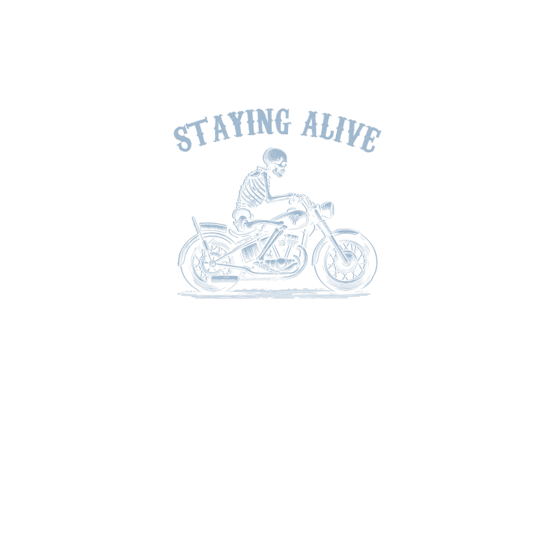 Staying Alive Skeleton riding Motorcycle D Grey