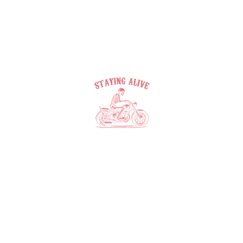 Staying Alive Skeleton riding Motorcycle D Red