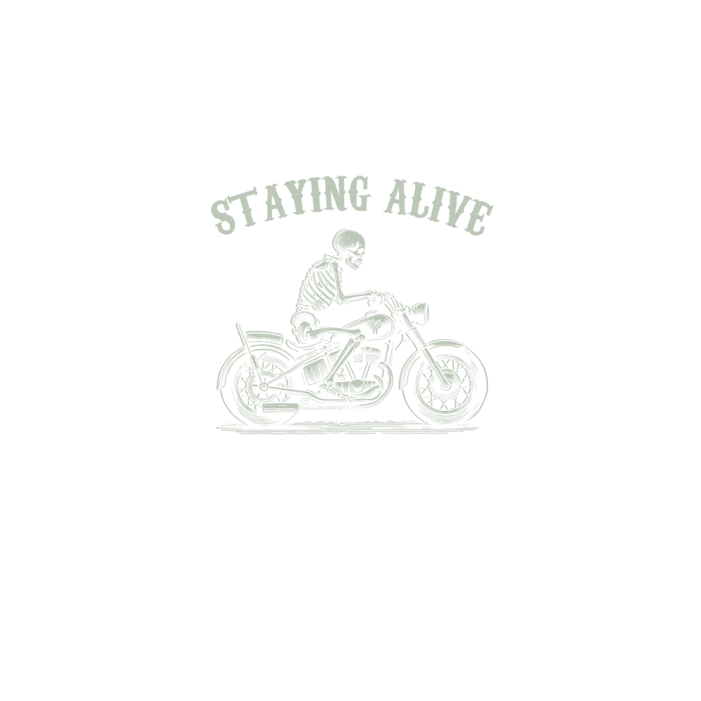 Staying Alive Skeleton riding Motorcycle D Retro Green