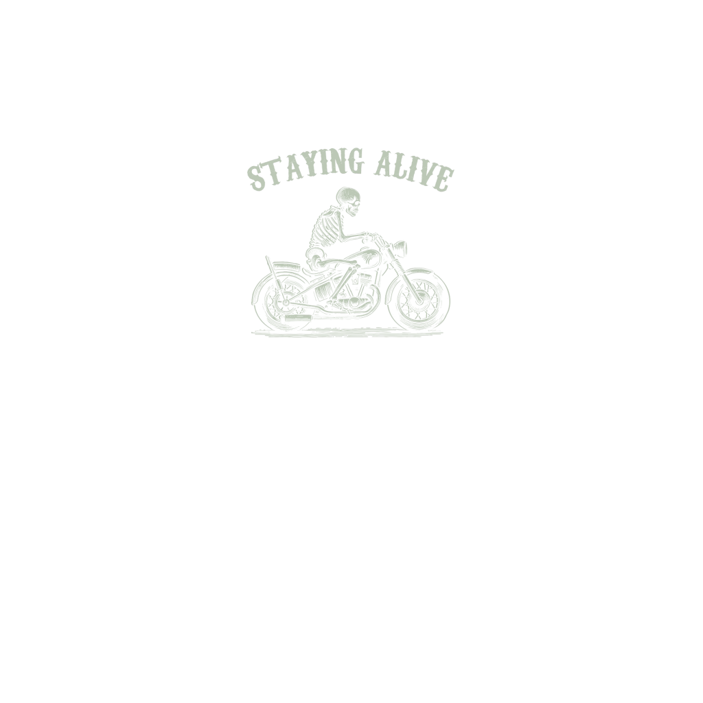 Staying Alive Skeleton riding Motorcycle D Retro Green